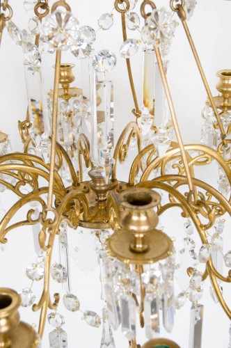 バカラの、19世紀半ばのフランスオルモル(金箔)とクリスタルによる、18個のライトの、豪華なシャンデリア。