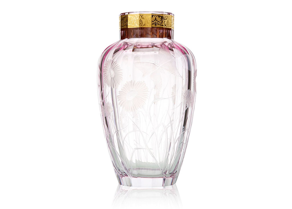 ( Bohemian Glass Moser Blossoming Meadow 3290, Hand Cut and Engraved Underlay Vase )