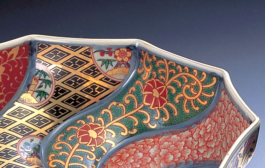 その祥瑞文様を、古伊万里の特徴である、金色や赤で華麗に表現しています。