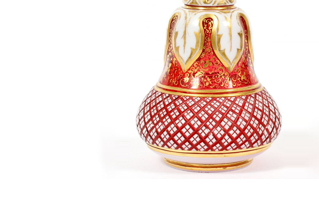 赤をベースに金彩が施された、ヨーロッパの感性たっぷりのエレガンスさと豪華で緻密な装飾が魅力的です。