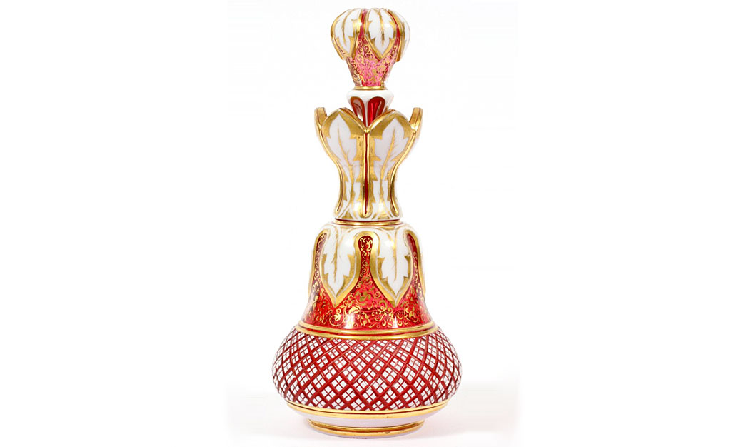 ( Bohemian Glass Enamel Overlay & Gilt Glass Perfume )