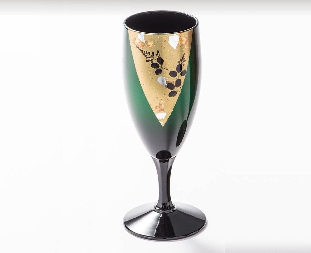 仙台生まれの漆器工芸、「玉虫塗」の美しいペア・ワインカップです。