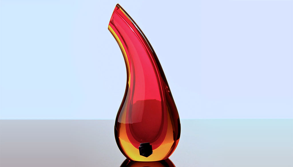 そして、鮮烈な存在感を示している、この赤と黄色の強いコントラストは、Sommerso(ソッメルソ)と呼ばれる技法により表現されています。