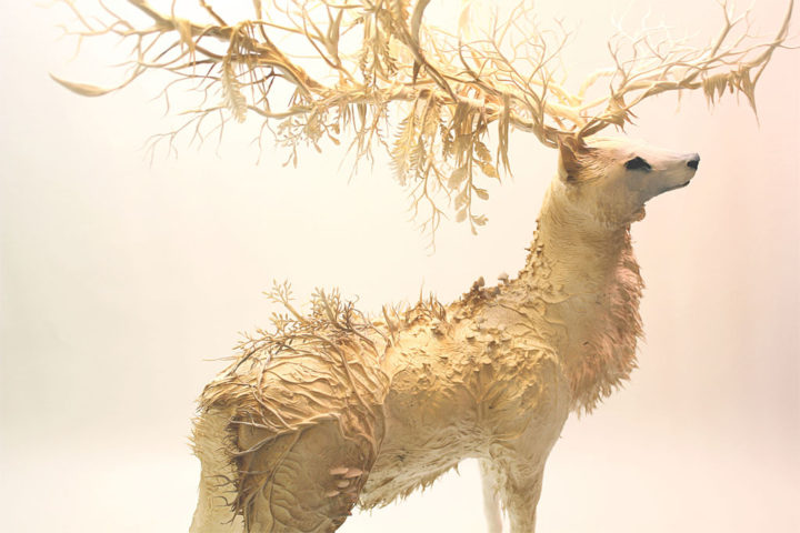 その作品の世界観は、ファンタジーの世界から飛び出してきたかのような、繊細で幻想的なもの。動物と植物、花と鳥、魚などを絶妙のバランスで組み合わせて、独特で幻想的な世界観に溢れる作品創りをしています。