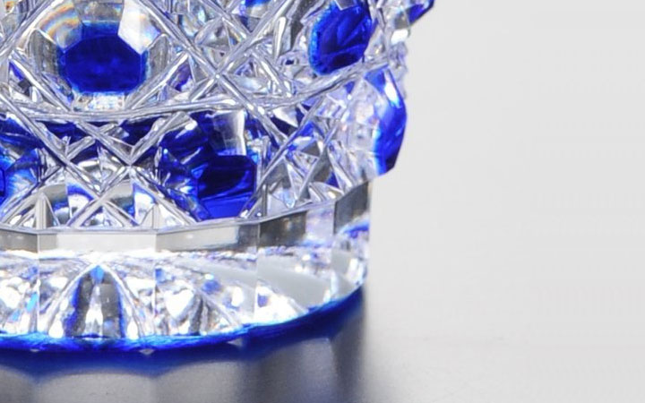 キラキラ光り輝くクリスタルガラスと瑠璃色の組合せがすっきりとした印象を与えます。