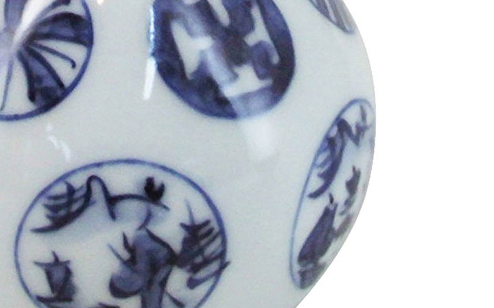 有田焼、ひいては陶磁器を代表する技法、染付は、釉薬を施す前の素焼生地にコバルトを原料に使った絵の具で絵付けをし、釉薬を掛け、本窯と呼ばれる1300〜1400度ほどで焼成させる技法。