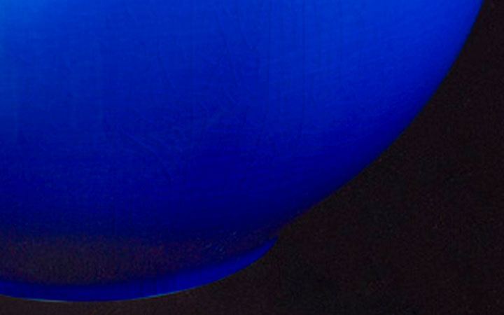 釉薬で色彩を調整した鮮やかな群青色に強い個性があり、海外にも多くの作品を発表して高い評価を得ています。