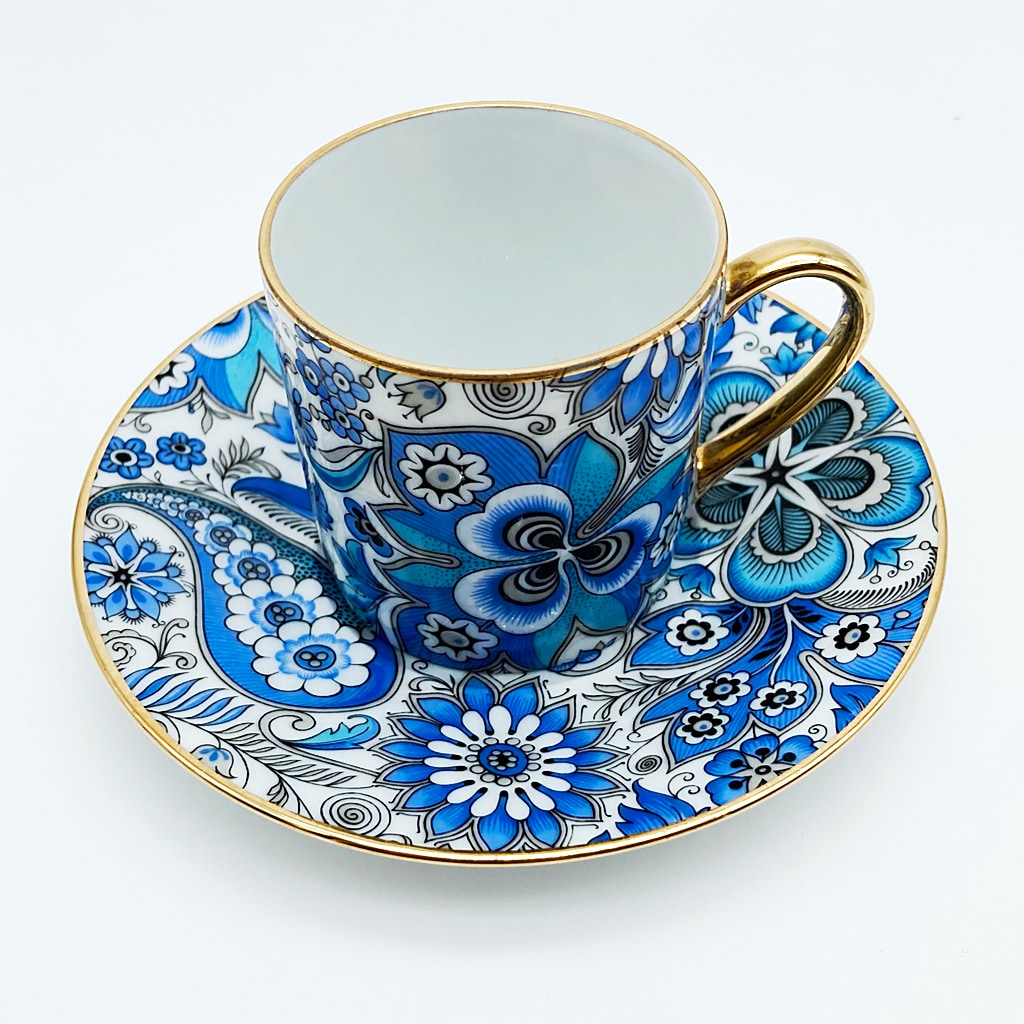リモージュ デミタス カップ&ソーサー ブルー アラベスク模様 金彩