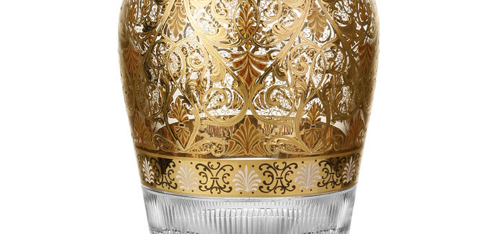 ボヘミアガラス モーゼル 花瓶 History 3203, hand painted and gilded vase ボヘミアガラスを代表するブランド、モーゼルから、ご紹介。 モーゼルの伝統的な美しさを持つ、クラシカルなデザインの花瓶。 繊...